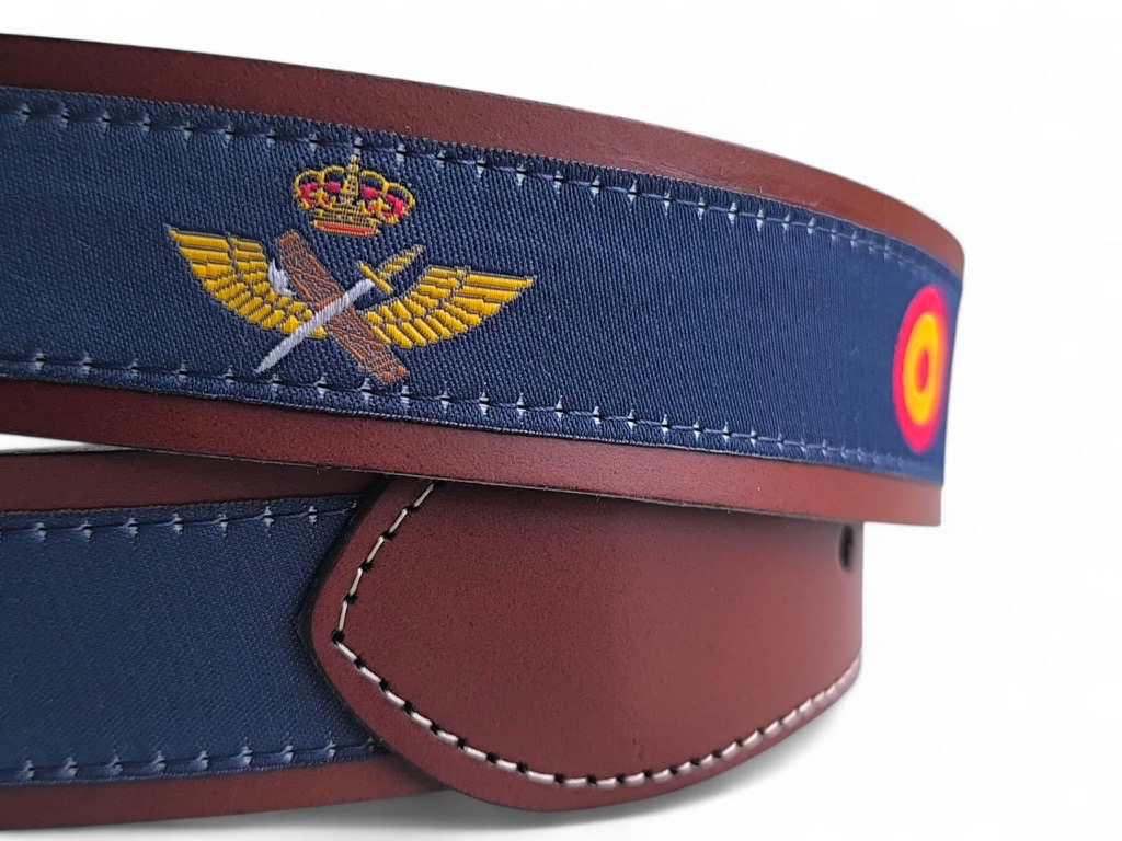 Descubre el cinturón deportivo de cuero autentico «ALAS MILITARES», una pieza única diseñada para los entusiastas de la aviación española. Este cinturón presenta una cinta de alta calidad meticulosamente bordada con las diferentes alas de la aviación militar (Ejército del Aire, Ejército de Tierra, Armada) y de la Guardia Civil, así como algunos otros detalles característicos de las aeronaves militares, como son la escarapela y la cruz de San Andrés, ofreciendo un diseño distintivo y lleno de historia. Fabricado con materiales duraderos, garantiza una larga vida útil y un ajuste cómodo. Ideal para complementar tu estilo diario o para ocasiones especiales, este cinturón no solo es un accesorio de moda, sino también una declaración de tu pasión por la aeronáutica. Sus detalles bordados lo convierten en un elemento de conversación y un regalo perfecto para coleccionistas. Añade un toque de autenticidad militar a tu vestuario con este cinturón exclusivo y optimizado para SEO con palabras clave como «cinturón aviación», «alas militares», «cinturón bordado» y «accesorios aeronáuticos». Un regalo perfecto y elegante para cualquier amante de la aviación y del coleccionismo militar.