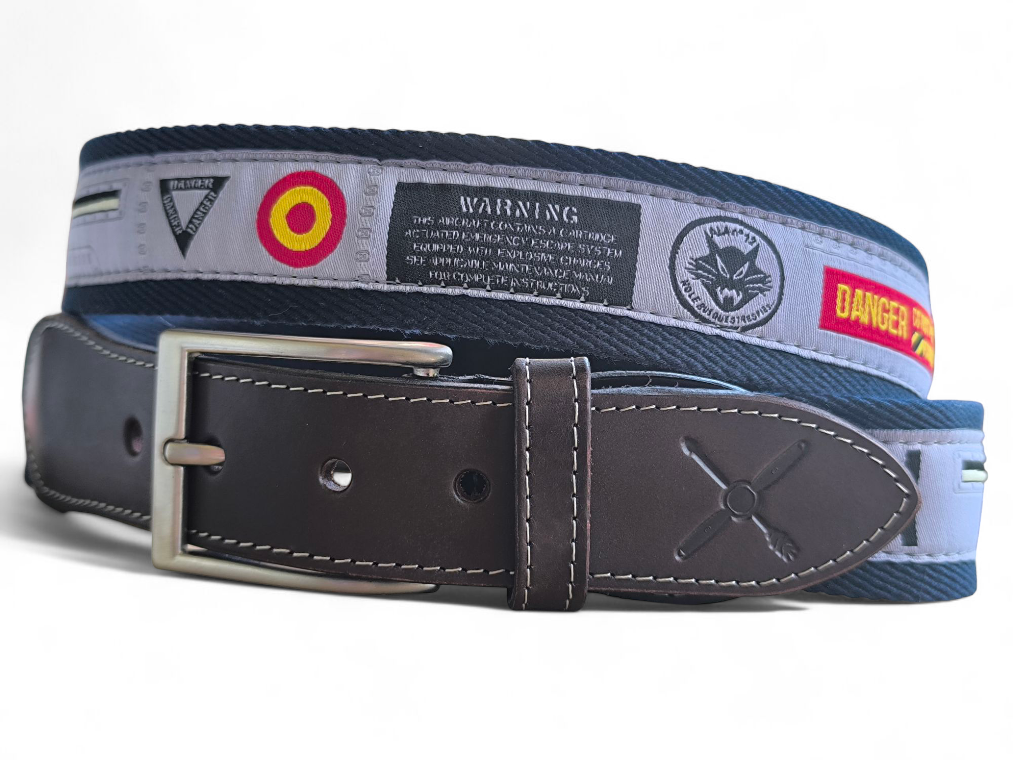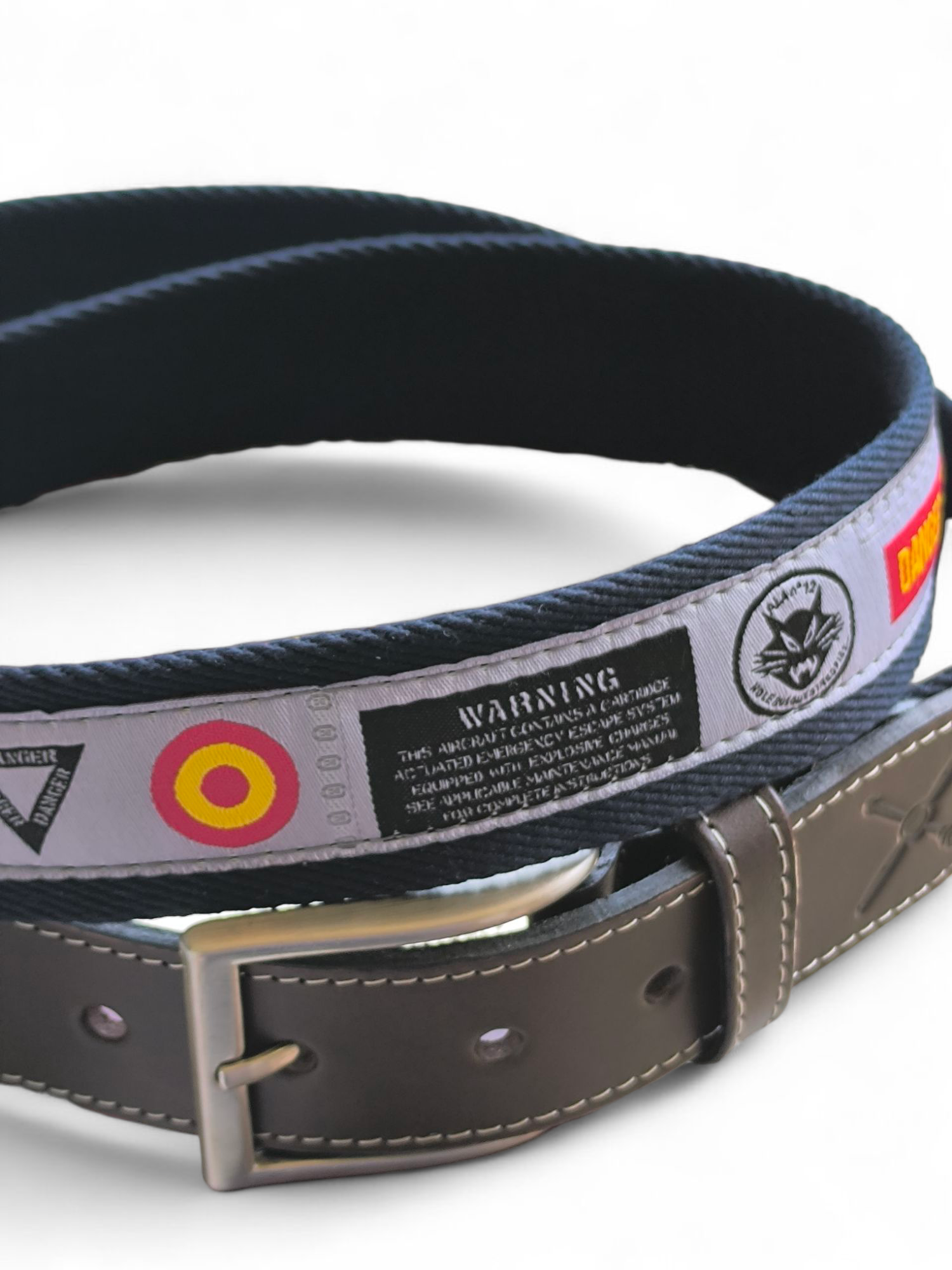 Sumérgete en el mundo de la aviación con el cinturón FUSELAJE ALA 12 (con regulador), una pieza única inspirada en el icónico avión de combate F-18 del Ala 12 (EAE). Este cinturón de aviación no es solo un accesorio, es una declaración de estilo y pasión por los cazas militares. Cuenta con una cinta central bordada que reproduce fielmente detalles del fuselaje del F-18 del Ala 12 de Torrejón, ofreciendo un diseño exclusivo y auténtico. Fabricado con materiales de alta calidad, garantiza durabilidad y resistencia para el uso diario. Dispone de REGULADOR, para poder adaptarlo a distintas tallas, de forma rápida y sencilla. Su diseño versátil lo hace perfecto para complementar cualquier atuendo casual o temático, destacando tu interés por la aviación y los aviones de combate. Ideal para coleccionistas, pilotos, o cualquier persona que busque un cinturón original y con historia. Añade un toque de adrenalina y elegancia a tu vestuario con este cinturón de aviación militar, optimizado para ofrecer confort y un ajuste perfecto. Un regalo excepcional para amantes de la aeronáutica y la cultura militar española.