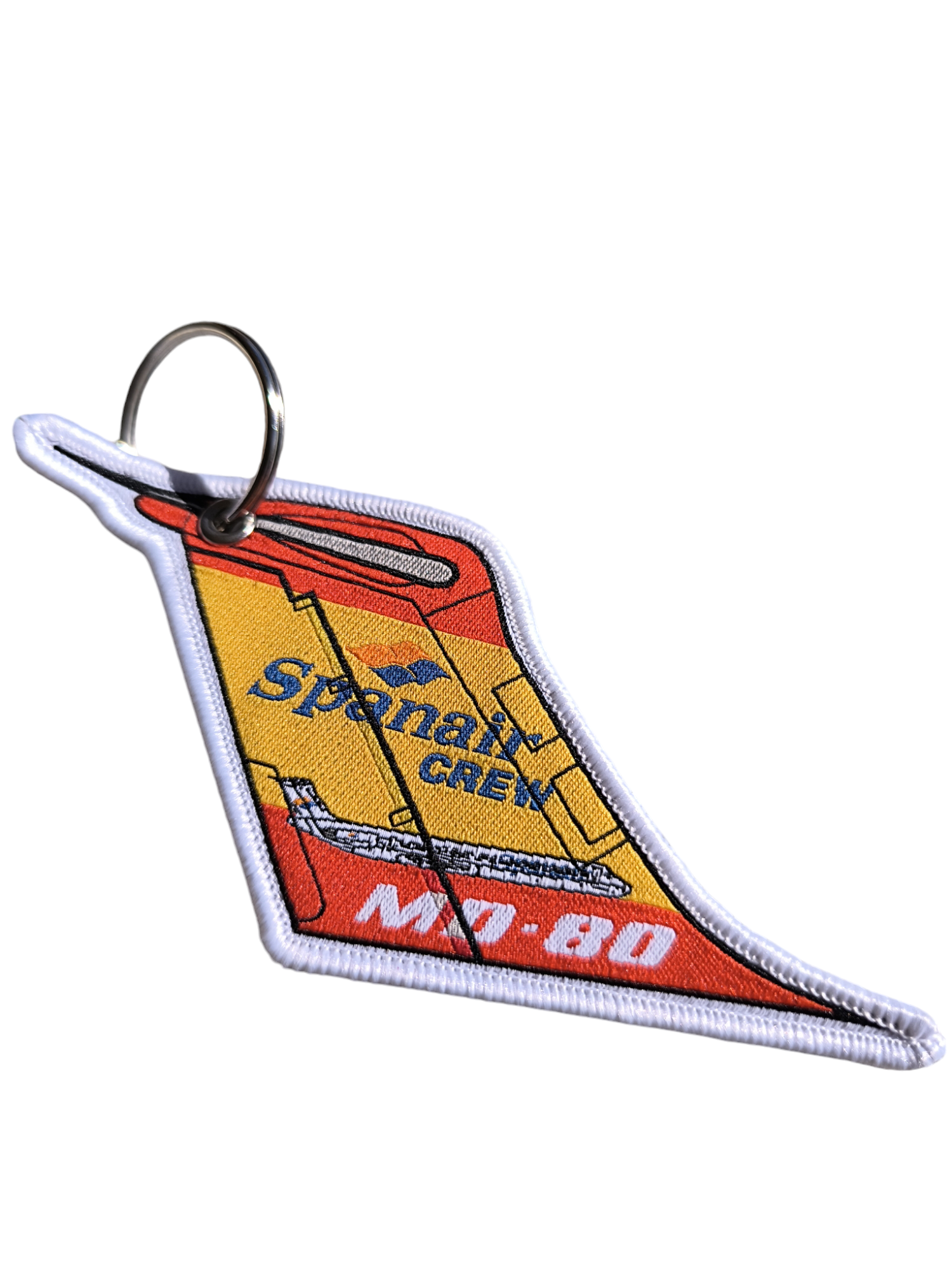 Revive los recuerdos de una de las aerolíneas más emblemáticas de la historia de la aviación comercial española con este emotivo llavero bordado que rinde homenaje al McDonnell Douglas de la querida Spanair. Esta compañía aérea, que durante décadas conectó España con el mundo y se ganó el corazón de millones de pasajeros, representa una época dorada de la aviación comercial nacional caracterizada por la calidez del servicio y la confiabilidad operacional. Spanair, con su distintiva librea y su compromiso con la excelencia, se convirtió en sinónimo de viajes seguros y experiencias memorables para generaciones de viajeros españoles. El McDonnell Douglas, con su silueta característica y su reputación de robustez, fue una de las aeronaves emblemáticas de la flota de Spanair, participando en miles de vuelos que crearon recuerdos imborrables. Este llavero bordado captura la nostalgia y el cariño asociados con esta aerolínea histórica, reproduciendo meticulosamente los colores corporativos y los elementos gráficos que hicieron reconocible a Spanair en aeropuertos de todo el mundo. La técnica de bordado empleada honra la memoria de esta compañía, utilizando hilos de calidad que garantizan la permanencia de los colores y la definición de los detalles. Ideal para antiguos empleados de Spanair, viajeros que volaron con esta aerolínea, coleccionistas de memorabilia de aerolíneas históricas o cualquier persona que aprecie la rica historia de la aviación comercial española y desee preservar el recuerdo de una época irrepetible.