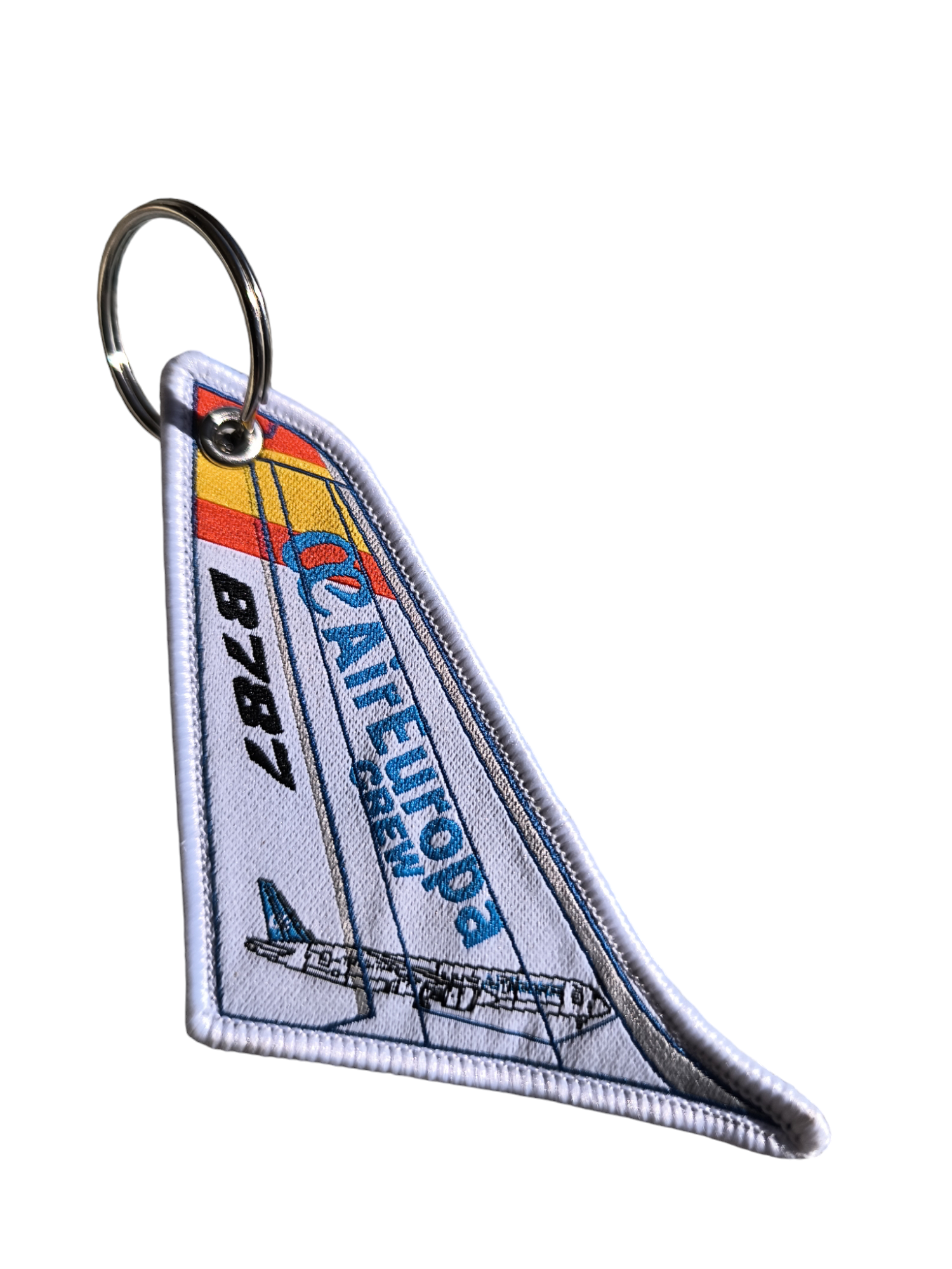 Llavero bordado exclusivo de Air Europa B787. Diseño premium que captura la elegancia de esta moderna aerolínea española.