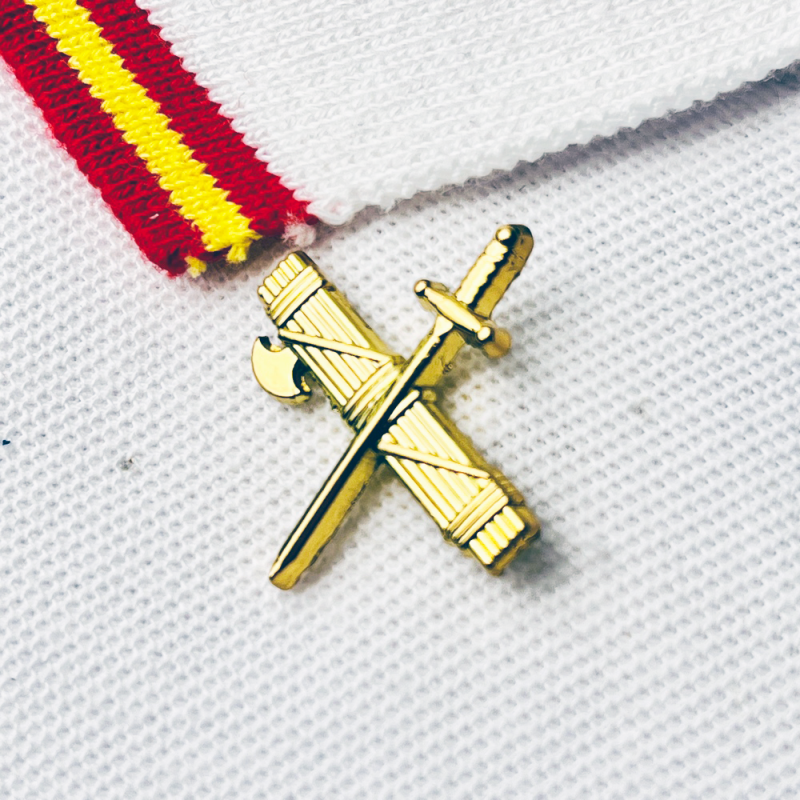 Elegante pin del escudo de la Guardia Civil en aluminio bañado en oro. Añade un toque de distinción y profesionalismo a tu atuendo con estos duraderos y sofisticados pines.